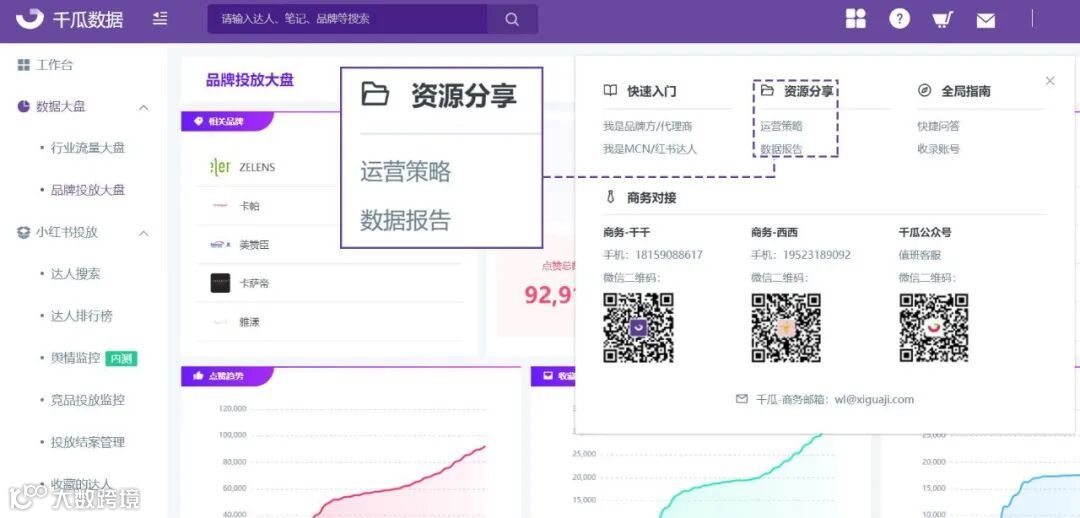 点击使用指南,用户可以根据定位和需求选择查看相关的攻略干货,有需要和商务对接的可以直接联系千瓜客户经理或关注千瓜公众号。