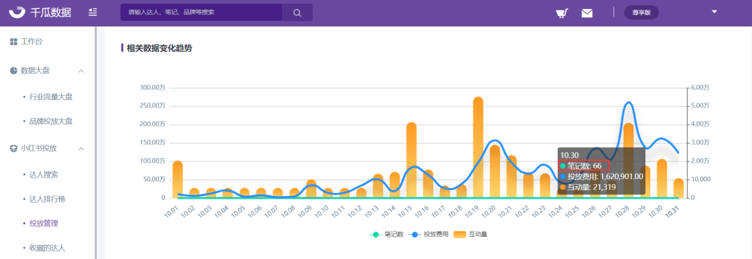 ▲ 千瓜数据-笔记投放相关数据变化趋势