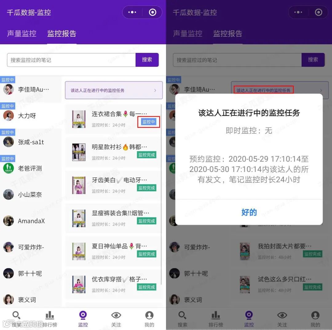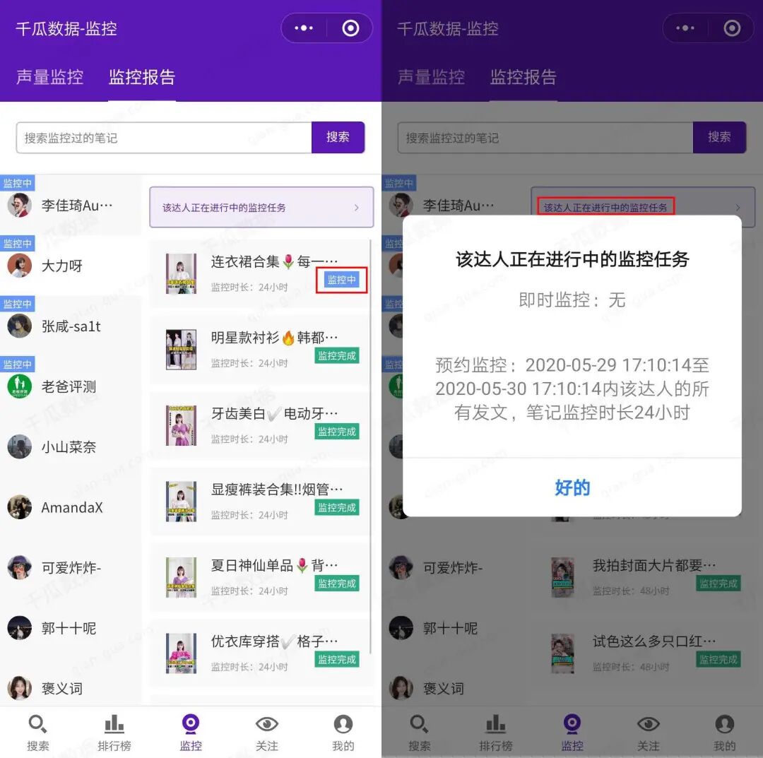 ▲ 千瓜小程序—即时监控/预约监控报告图例