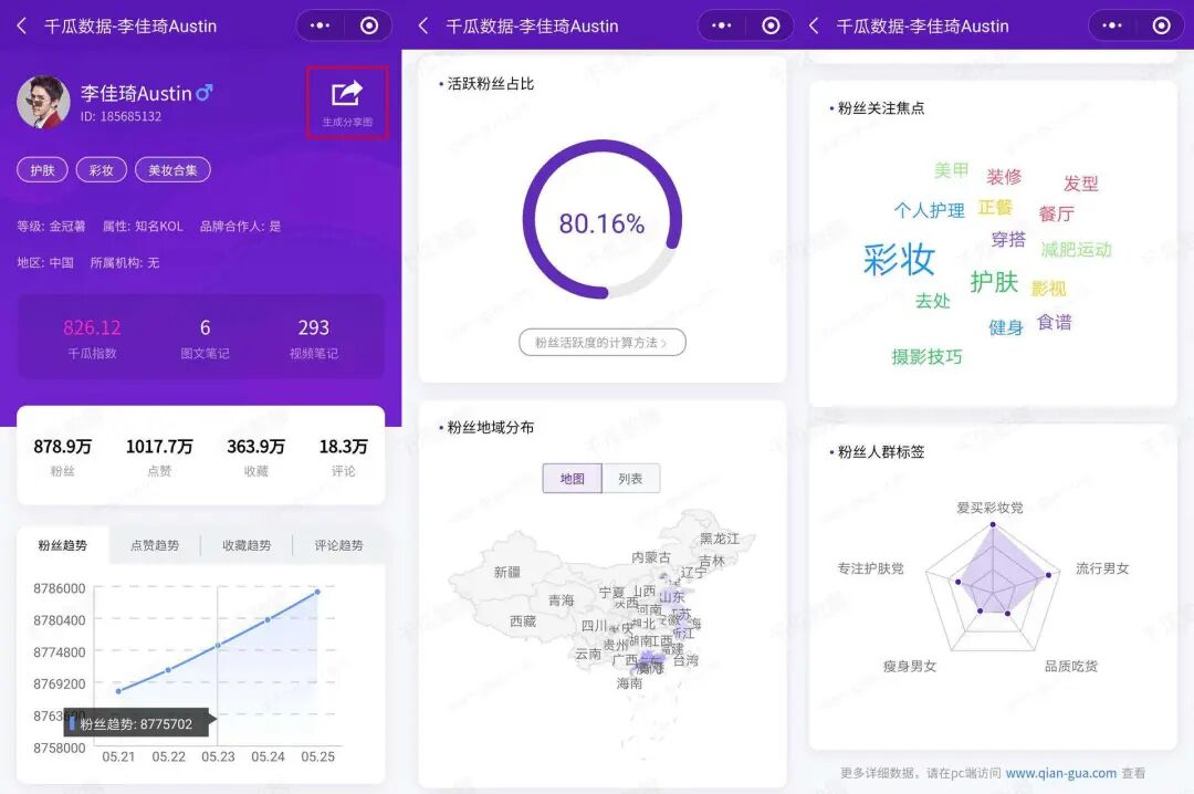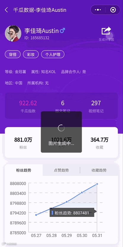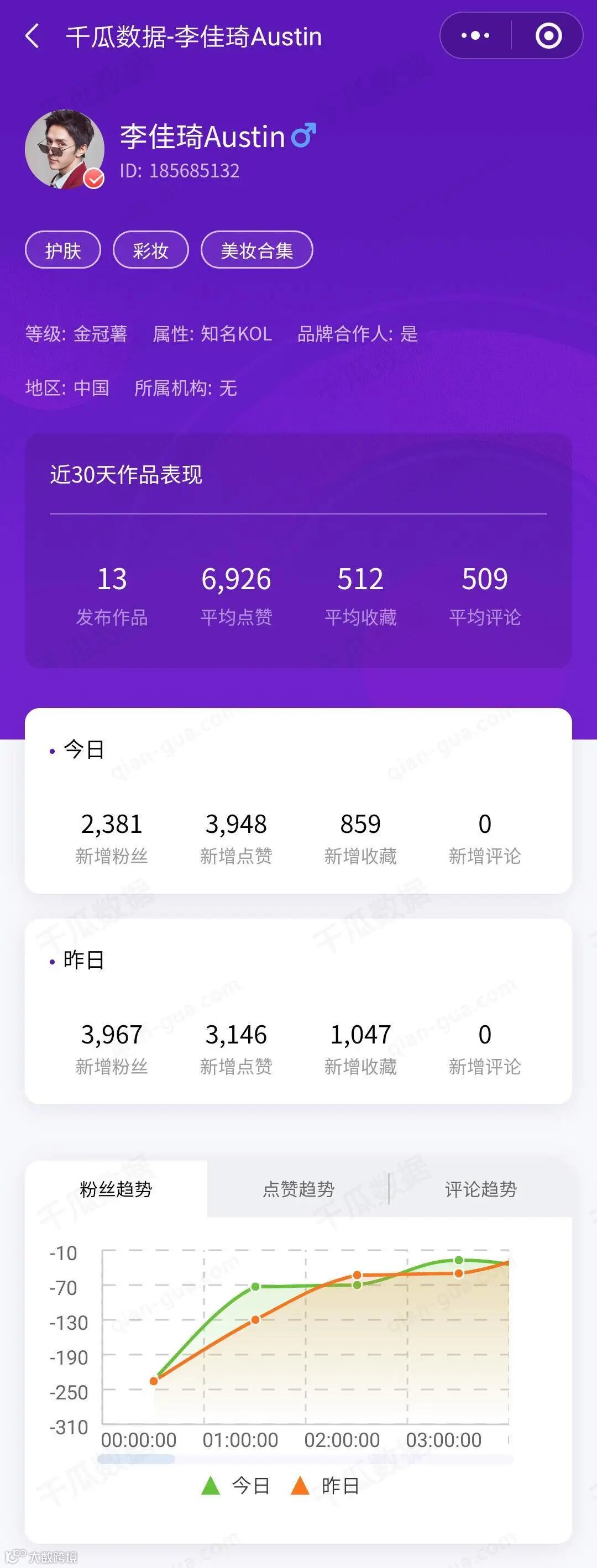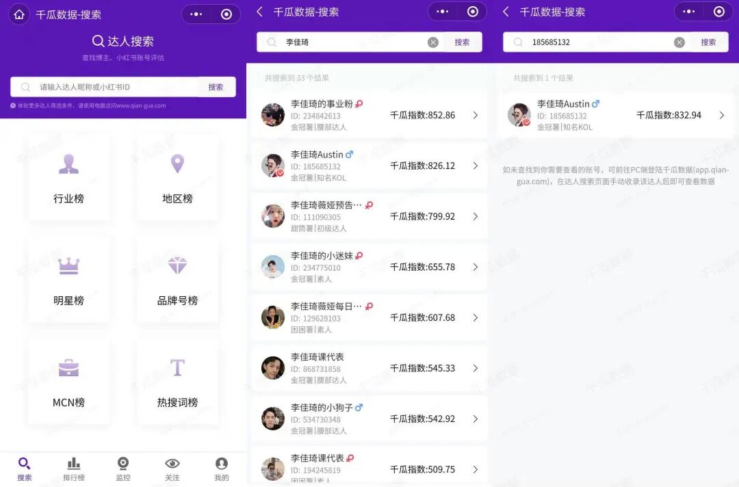 输入达人id精准快速检索达人信息,查看对应基本信息及详情数据,便于查看和收集数据并进行分析。