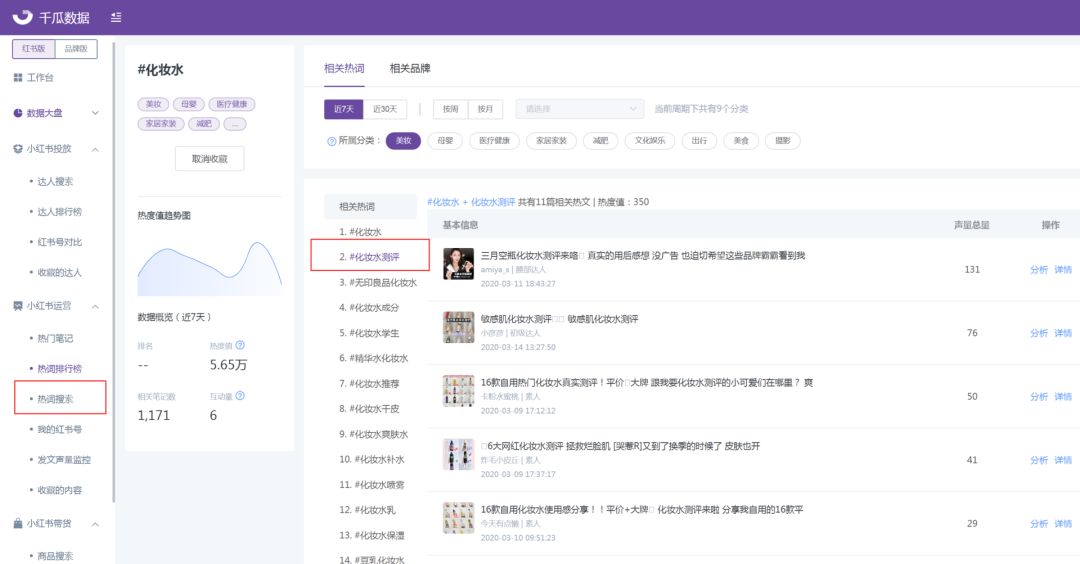 小红书热搜词排行分析(千瓜数据-小红书版)