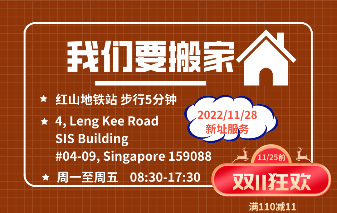 2022/11/28 起, 为了更好服务我们的顾客, 我们搬到了更市区, 更靠近MRT的新地点服务支持我们的顾客们, 新地点距离红山地铁只需要步行五分钟。同时我们也调整了营业时间, 周一至周五 8:30-17:30,