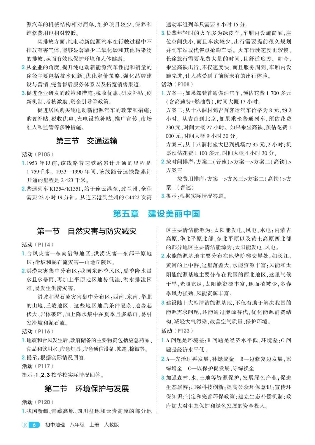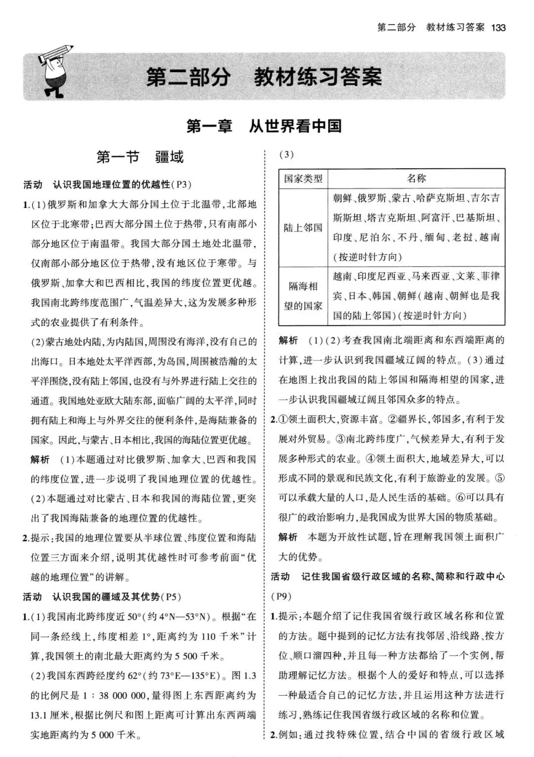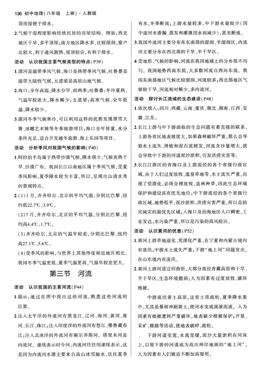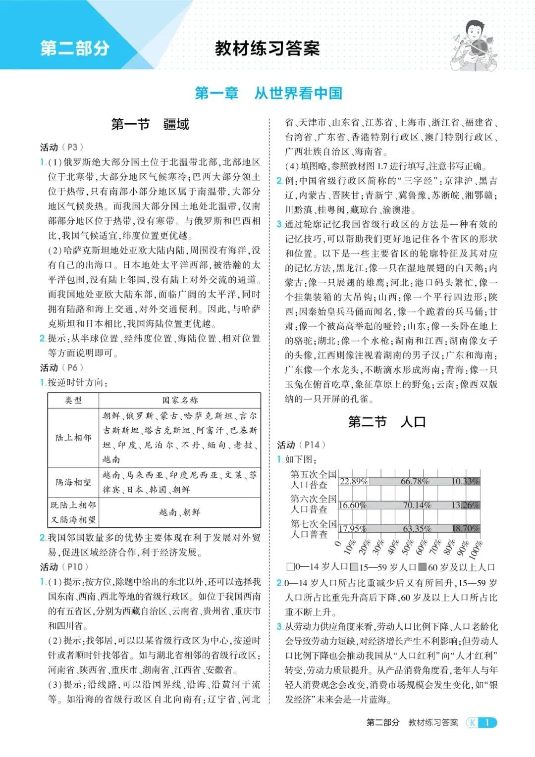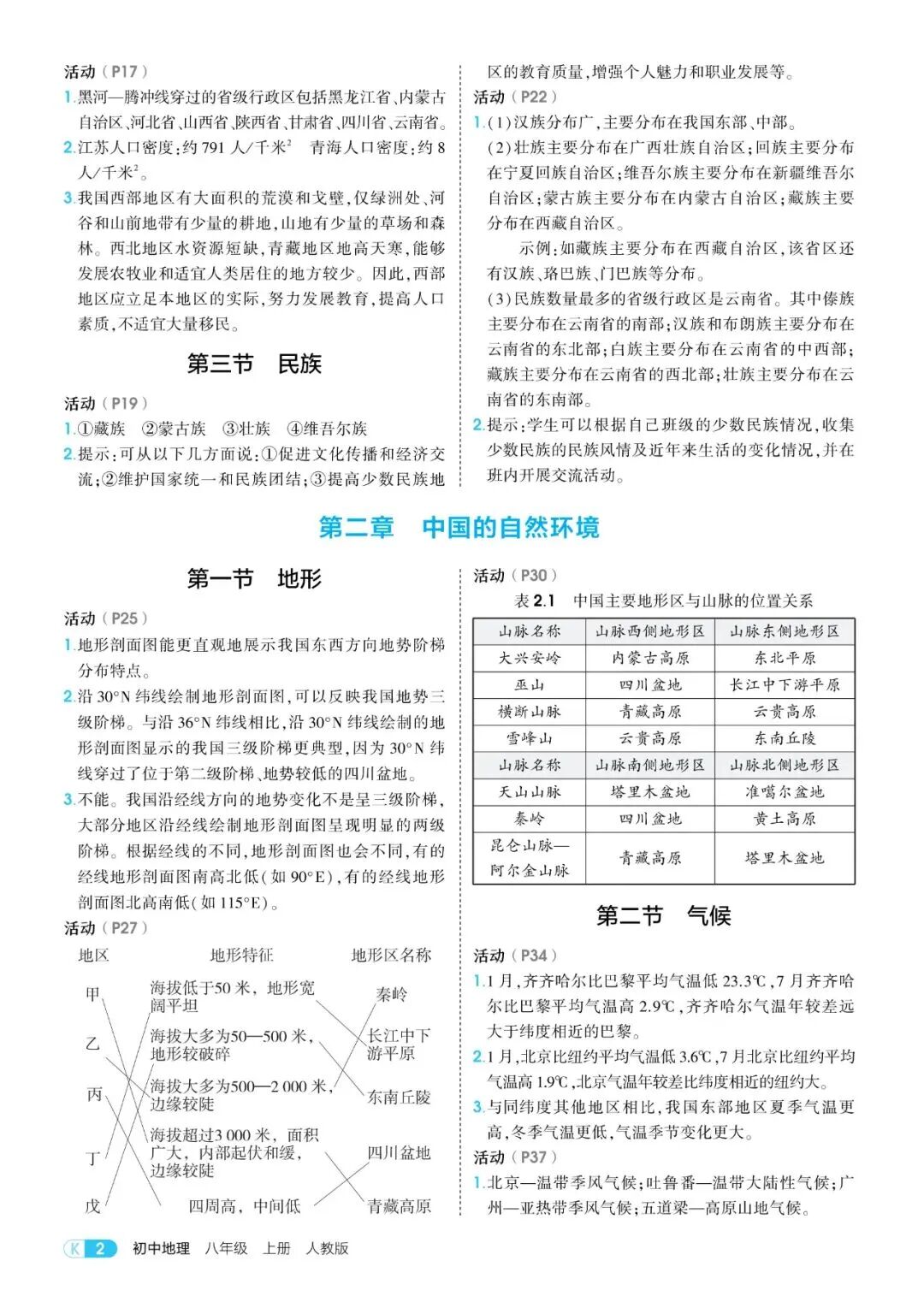 导读:【人教版】初中地理《教材习题参考答案》八年级上册(2024秋新版教材)
