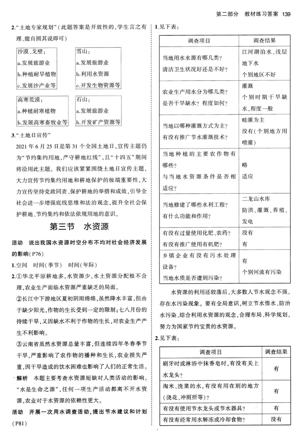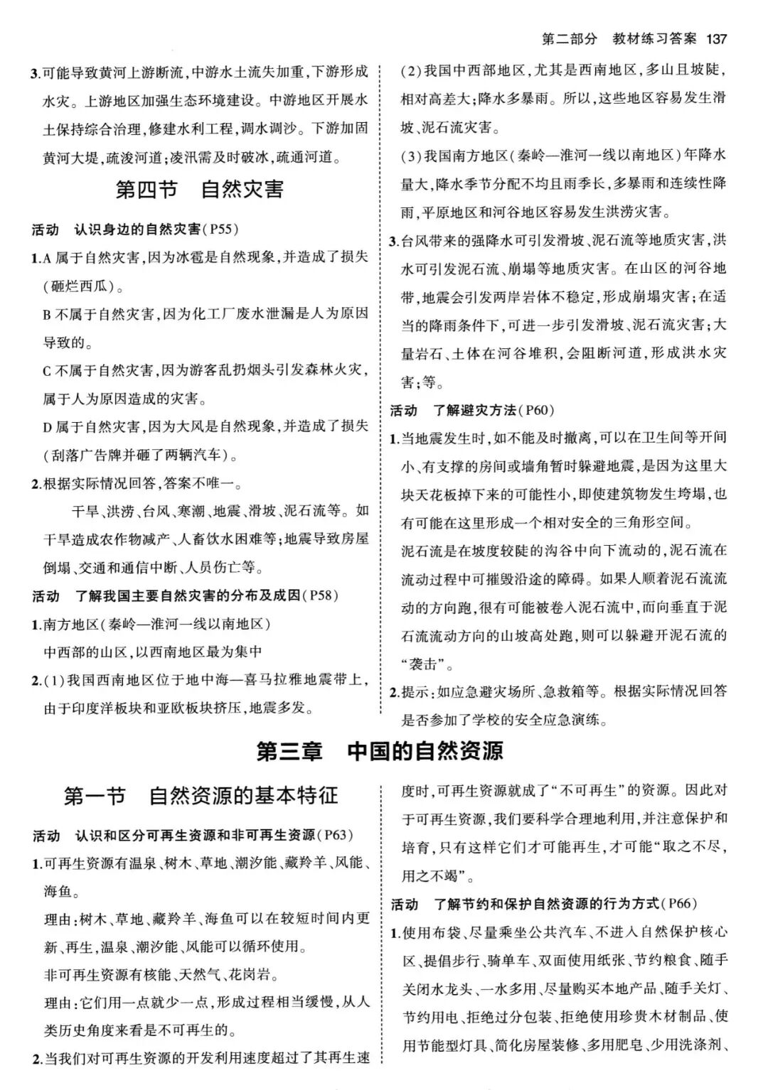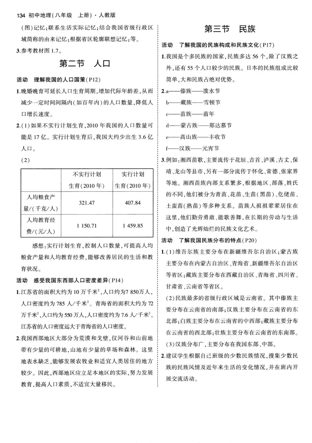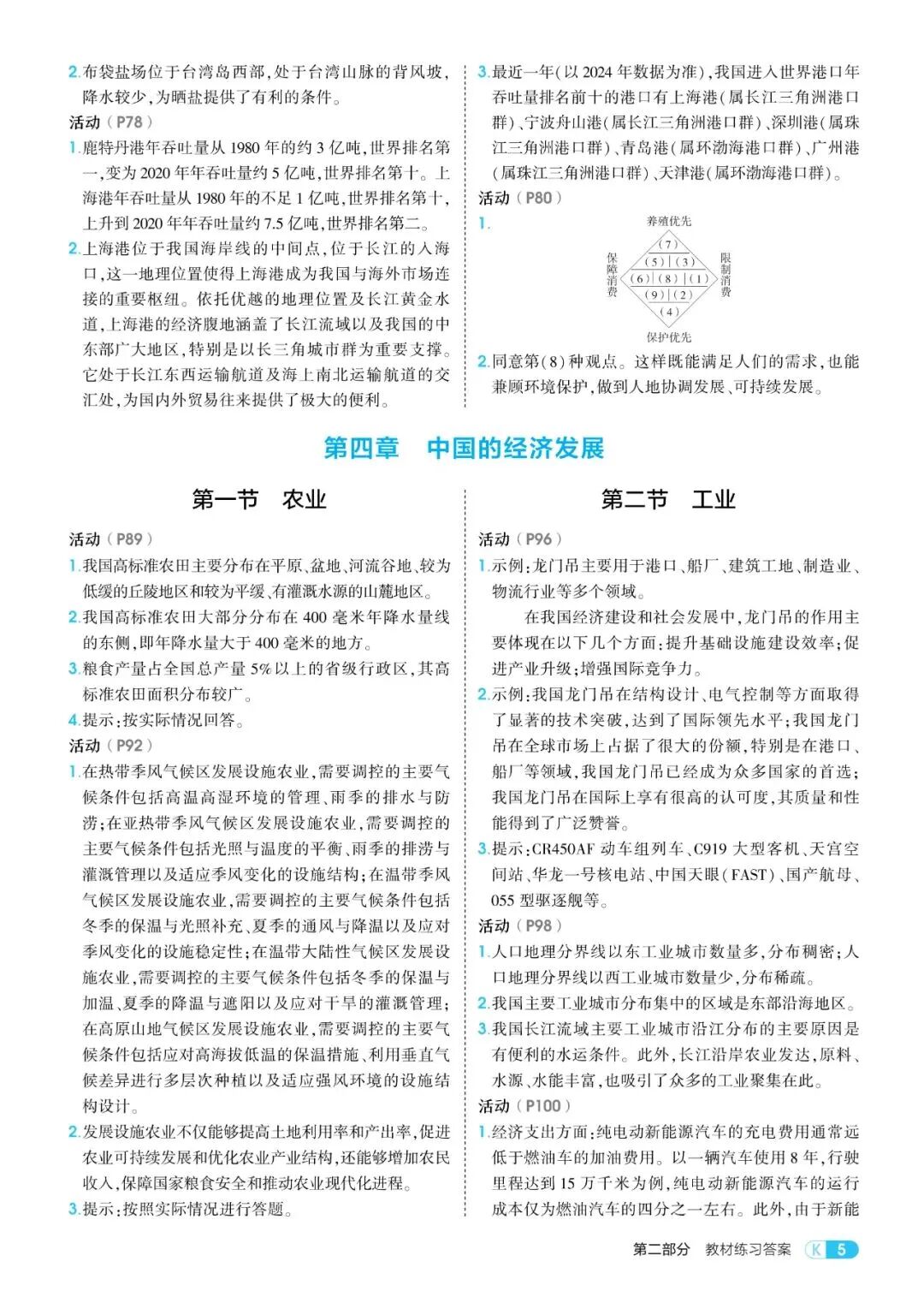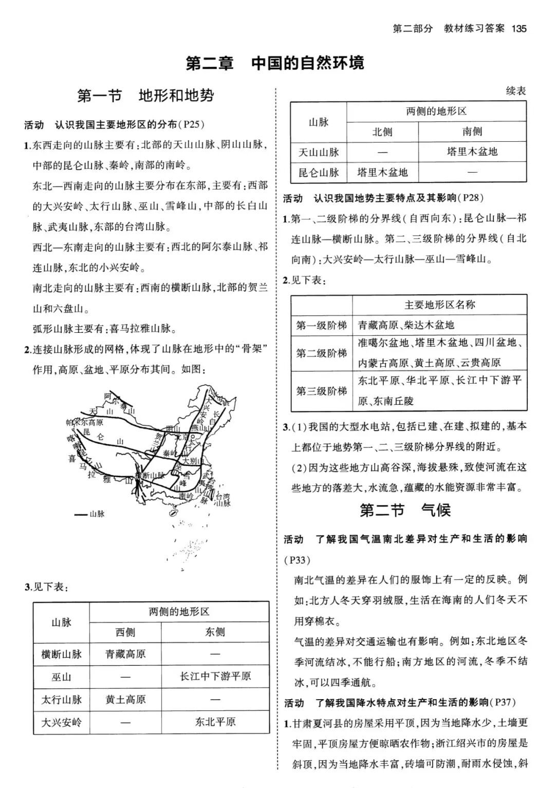 导读:【人教版】初中地理《教材习题参考答案》八年级上册(2024秋新版教材)