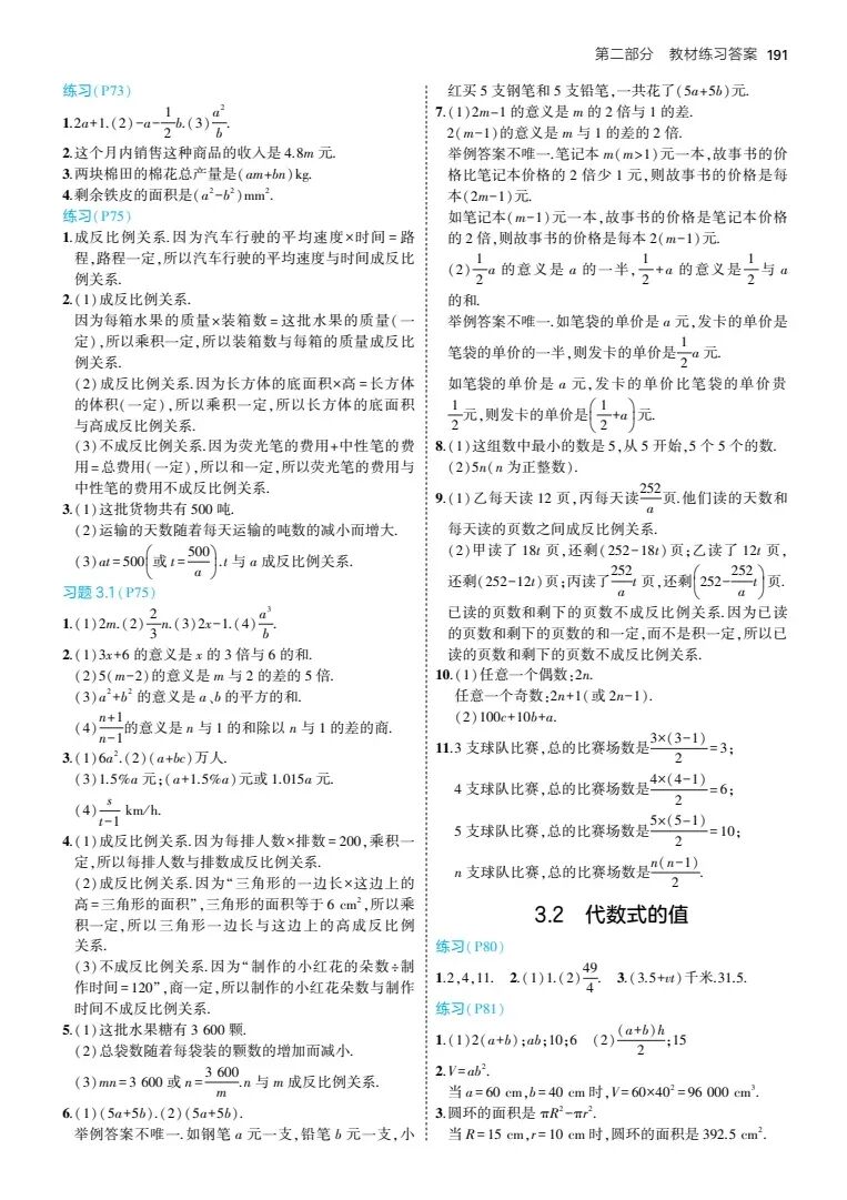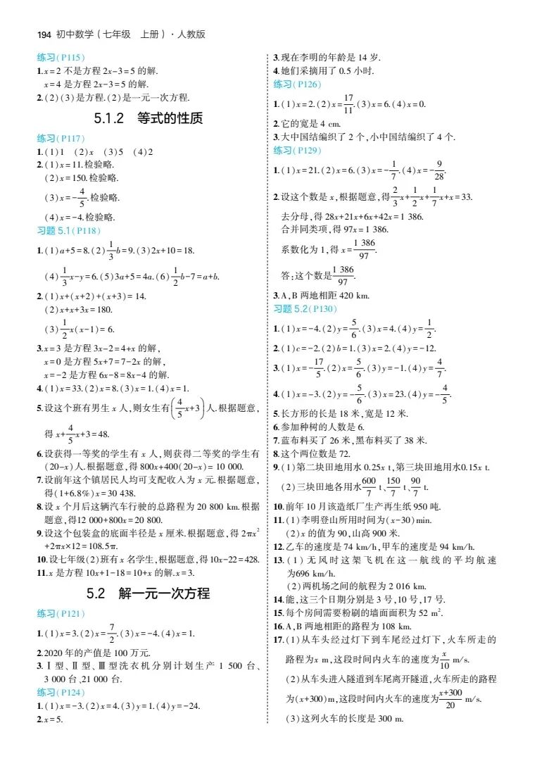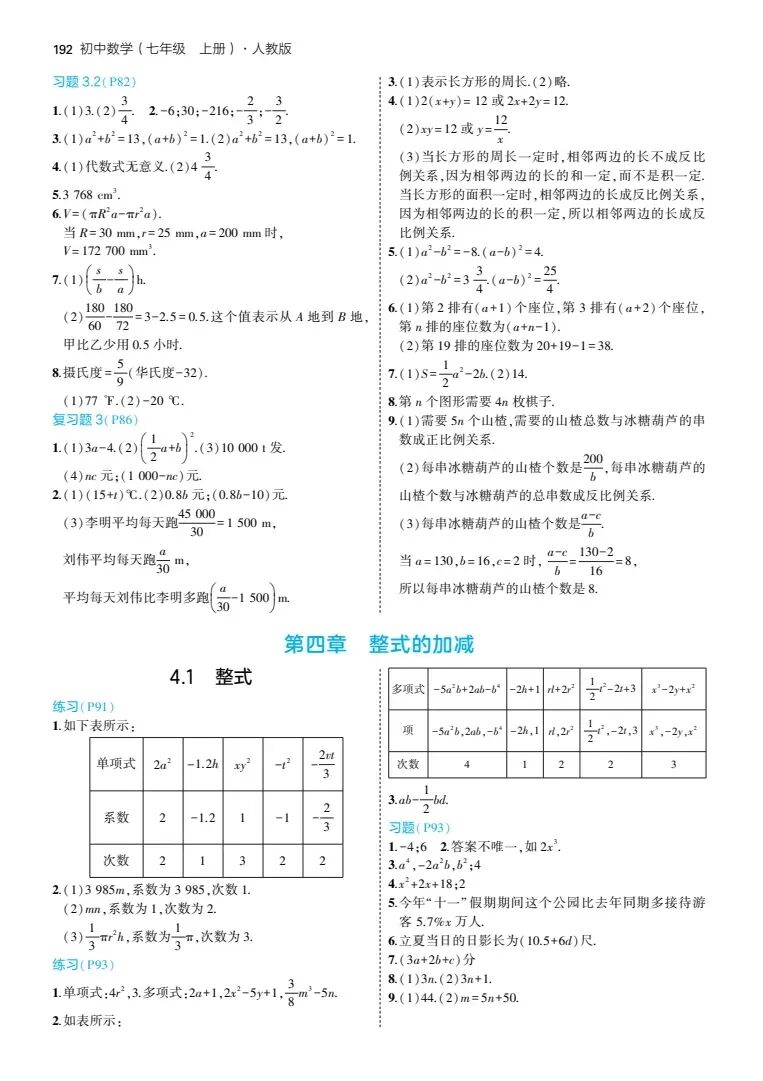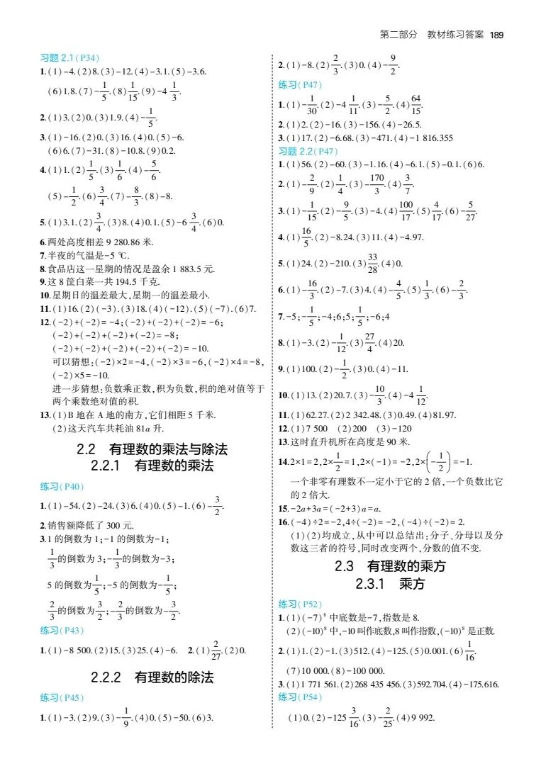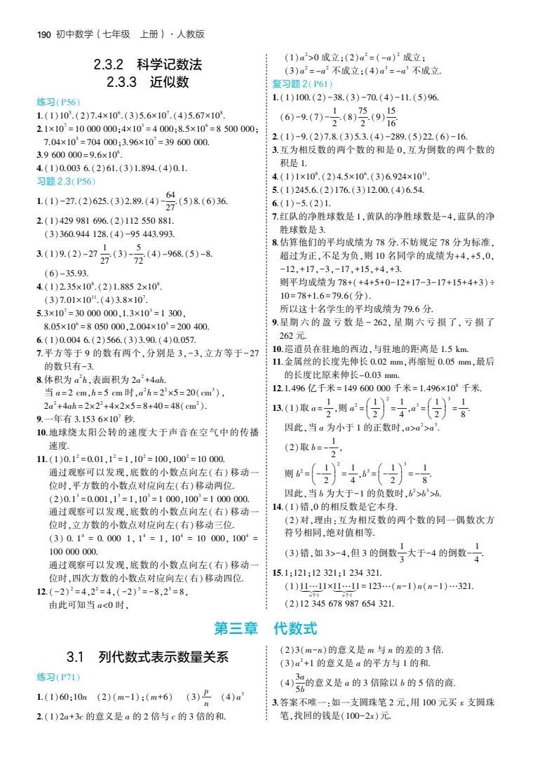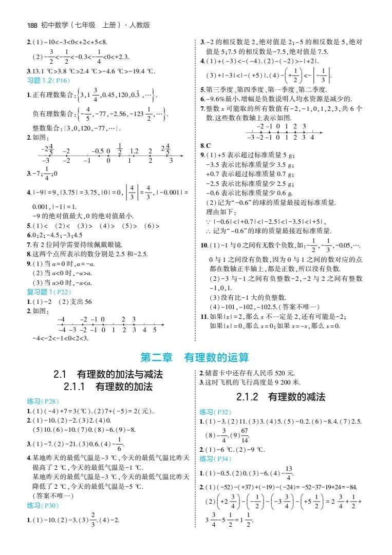 【人教版】初中数学《教材习题参考答案》七年级上册(2024秋新教材版)