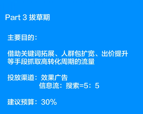 双十一品牌投放拔草期在11月1日-11月11日。主要目的:借助关键词拓展、人群包扩宽、出价提升等手段获取高转化周期的流量。小红书建议预算30%,投放渠道效果广告。种草内容对热搜关键词进行全面覆盖,确定产品核心关键词,在核心词的基础上,增加场景、竞品、营销节点以及潜在需求等词汇,在确保核心关键词基础上,激发更多潜在的用户搜索场景。