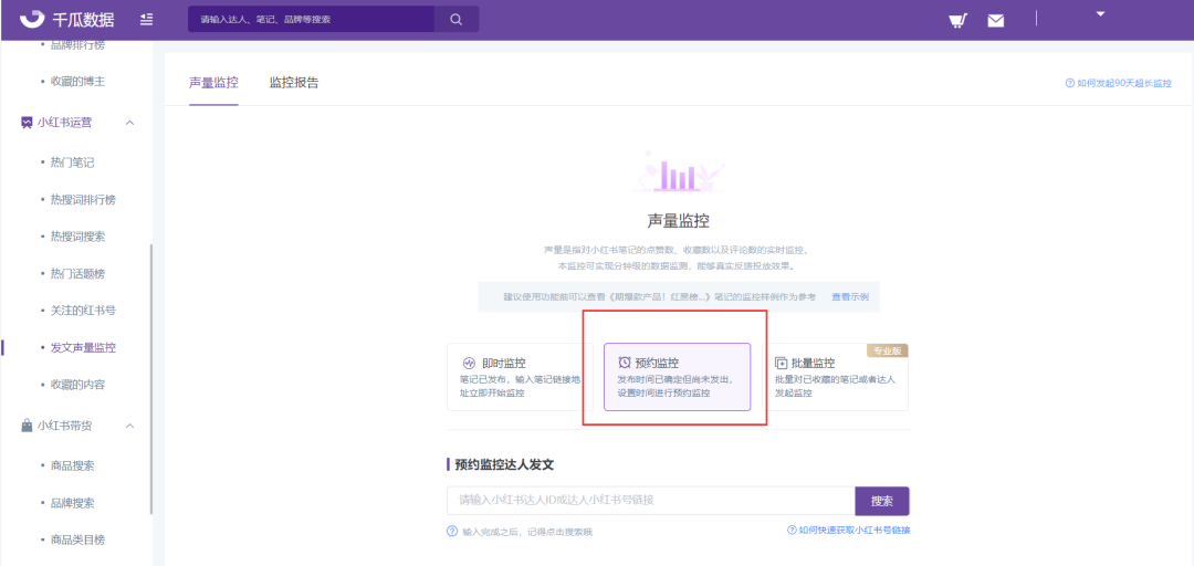 在内容上,小红书攻略特别提出企业号的运营。即KOL的优质品牌合作笔记转载到企业号,进行二次编辑发布;在前期进行流量付费,筛选优质笔记加量投放。笔记投放效果复盘,可以通过千瓜数据的发文声量监控,可以对所有投放的笔记发起最长90天的分钟级笔记发文监控。从而更精准地判断长尾流量好的优质笔记。