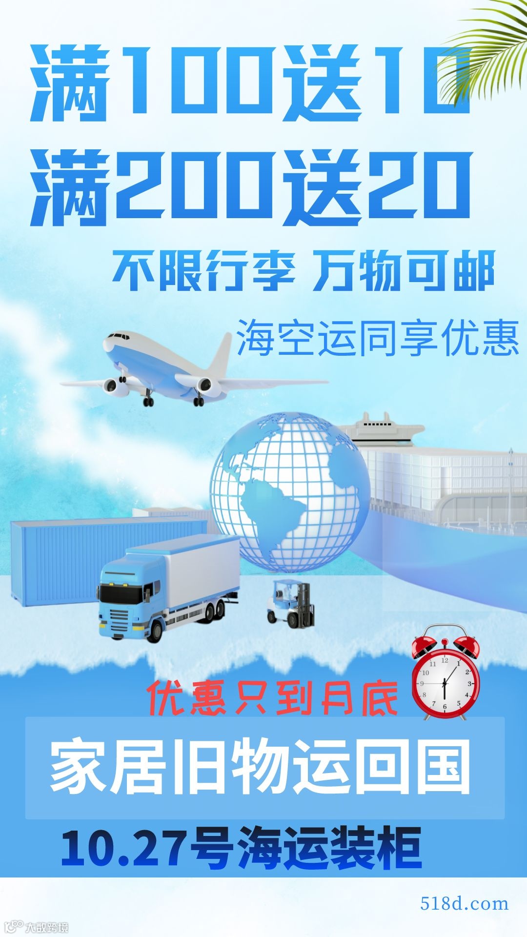 行李、家用杂货、旧日用品等运回国优惠。
