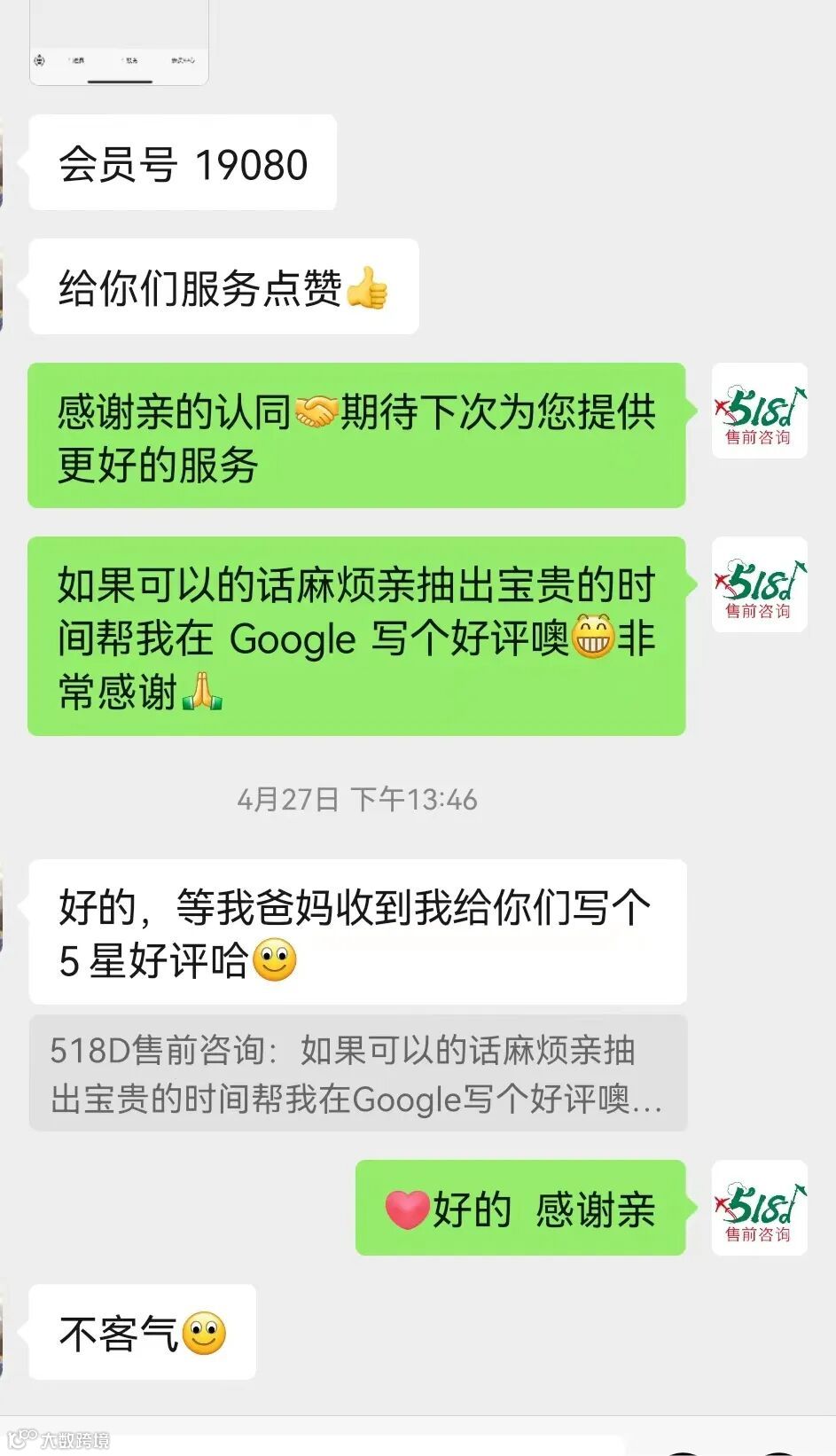 518D运营多年,深知顾客要求,服务业只要认真做好服务,客户就会口碑相传。