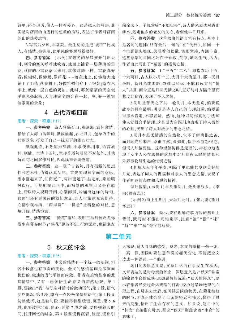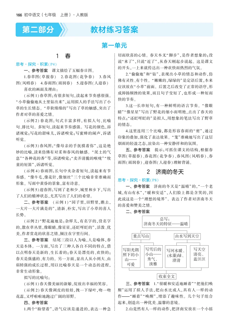 【人教版】初中语文《教材习题参考答案》七年级上册(2024秋新教材版)