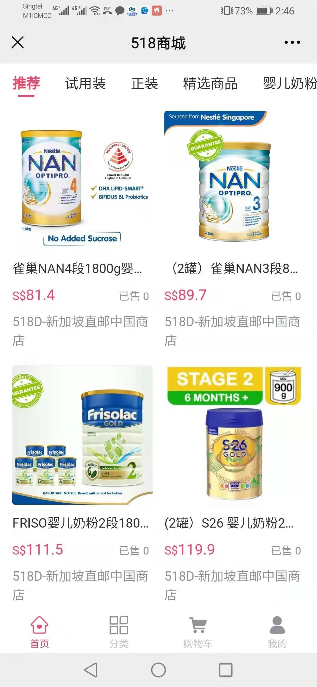 已经上线爱他美、雀巢等多款奶粉,全部价格是包邮到中国。