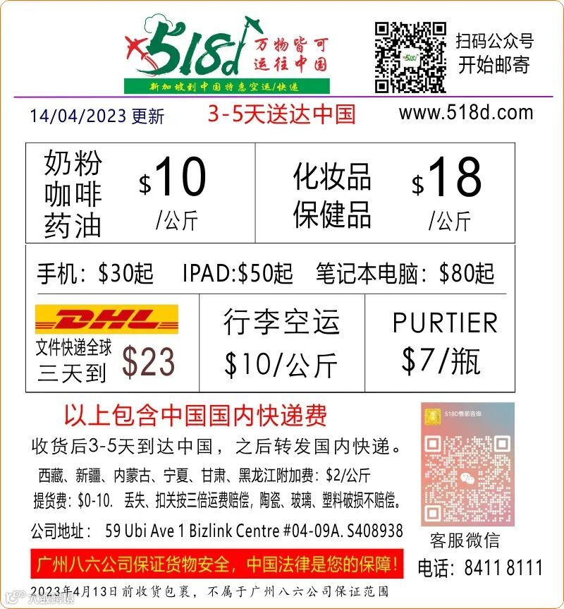 3、提货费:运费100新元内,提货费$5/次,超过100新元免费提货。