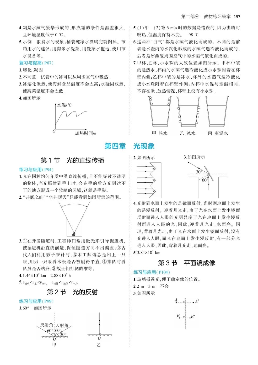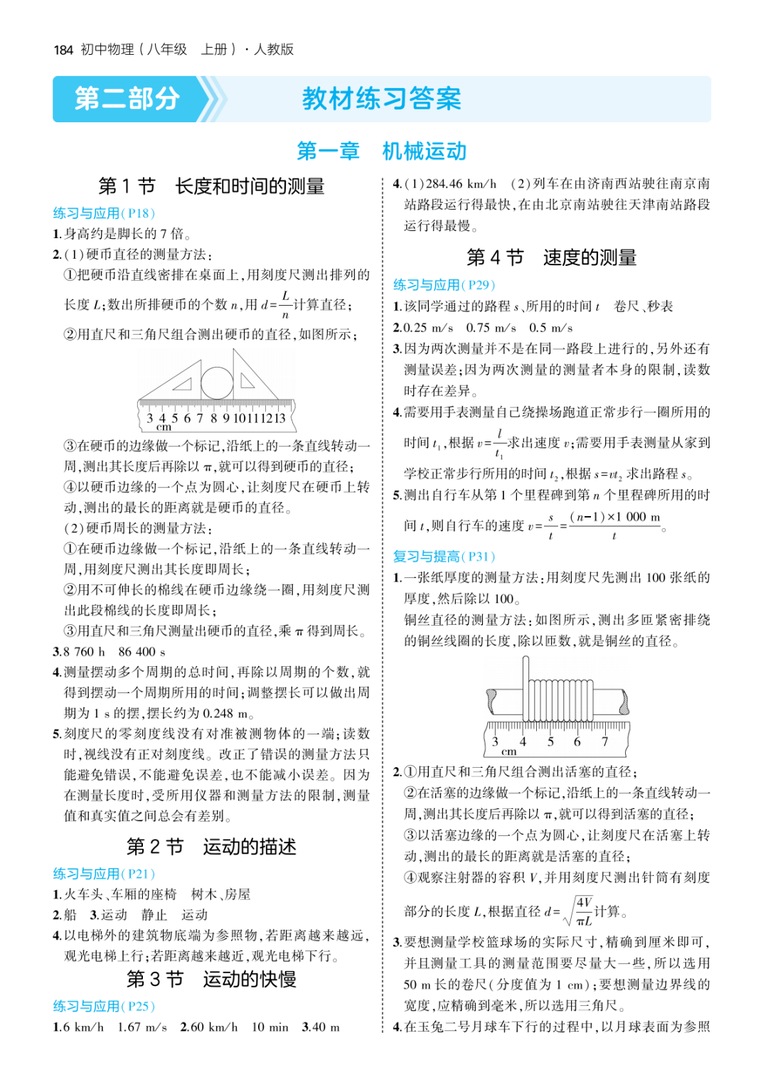 导读:【人教版】初中物理《教材习题参考答案》八年级上册(2024秋新教材版)