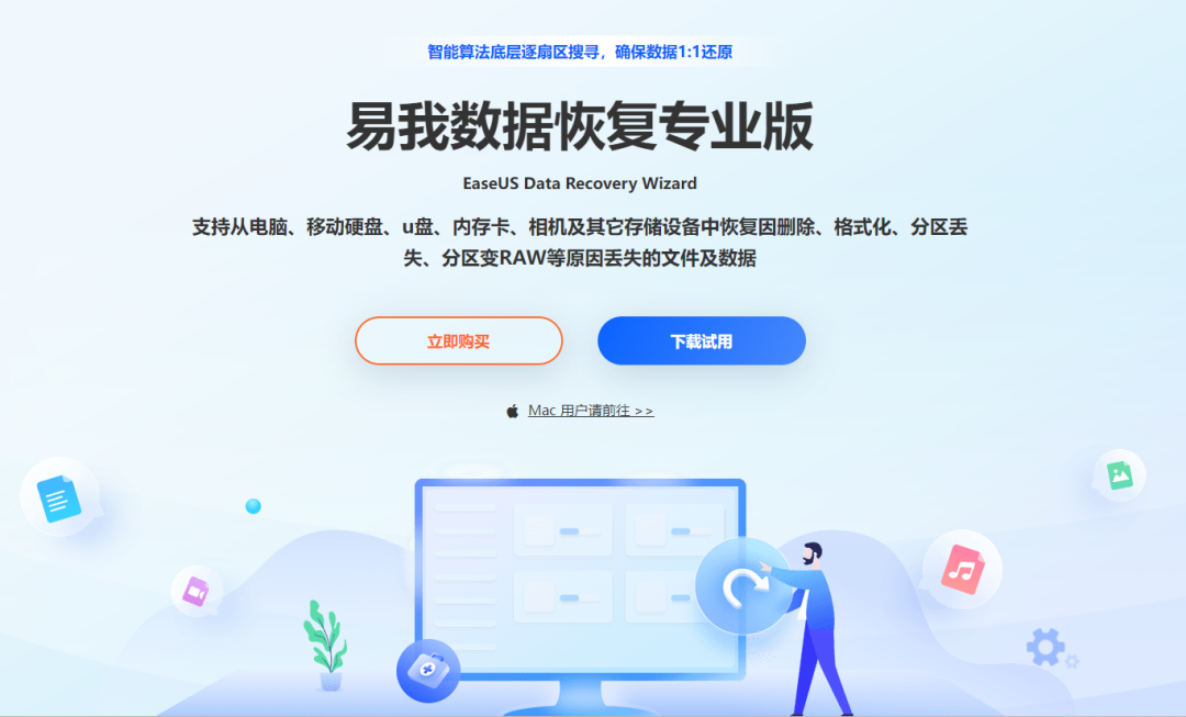 当基础方法无效时,“电脑文件丢失怎么恢复数据”的答案就藏在专业工具里。易我数据恢复软件支持Windows和Mac系统,能应对误删、格式化、分区丢失等100+场景,操作步骤简单且恢复成功率高,即使你是不懂电脑的新手,也能跟着以下步骤成功恢复丢失的电脑文件。