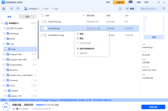 找到疑似文件后,双击即可预览内容(支持图片、文档等常见格式)。这一步至关重要,能提前确认文件是否完整——预览清晰、内容正常,说明恢复后可正常使用;若预览空白,可能已部分损坏。