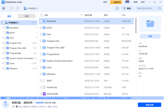 软件会自动进行快速扫描与 深度扫描,扫描中可随时暂停。