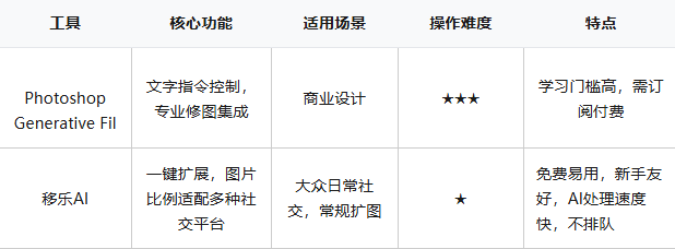 从抖音上的搞笑玩梗,到实实在在提升工作、创作效率,AI 图片扩展技术已经成了数字时代的 “必备技能”。而移乐 AI,就是普通用户入门的最佳选择 —— 免费、简单、高效,不管是做社交内容,还是处理商业图片,都能帮你轻松搞定。