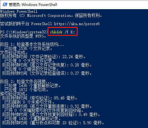 在命令提示符窗口中,输入chkdsk /f X:(X替换成U盘的驱动器号)来运行CHKDSK。