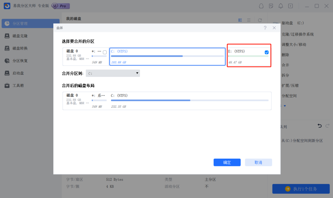 如上图,我们可以通过合并分区的方式,将E盘剩余空间分配给C盘,以增大C盘空间,同时避免E盘空间浪费的情况,让电脑磁盘得到更合理利用。