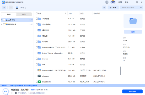 扫描需要一定时间,请耐心等待。在扫描过程中,可通过“文件类型”“修改日期”“文件大小”等筛选条件精准定位文件。双击文件预览,确认内容完整后再勾选恢复。