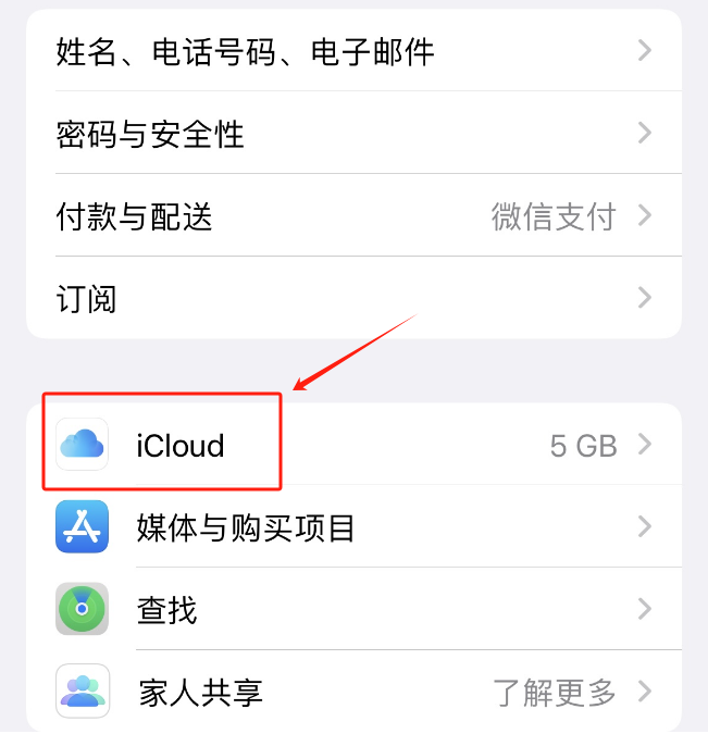 第二步:在“设置”页面上,点击您的Apple ID,此时您会看到iCloud的选项。