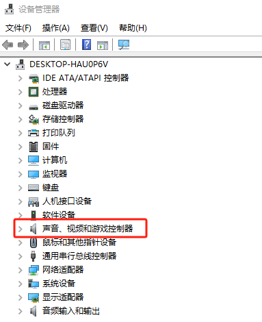 在设备管理器的窗口中,点击“声音、视频和游戏控制器”。