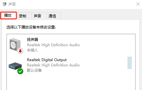 在“播放”页面上,查看是否正确选择了要使用的声音设备。