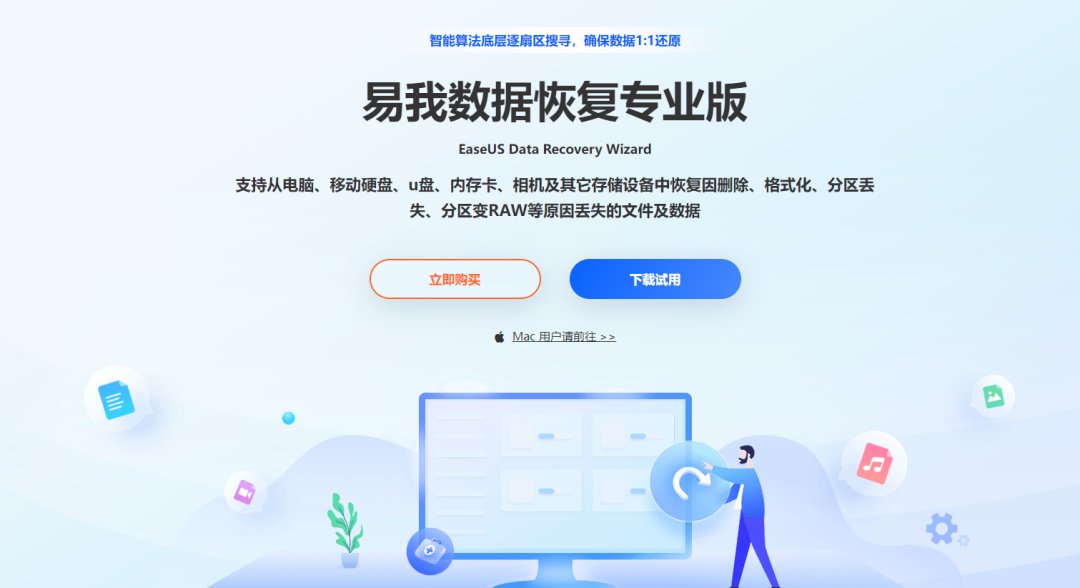 易我数据恢复软件可恢复误删、格式化、分区丢失、病毒攻击等场景下丢失的数据。