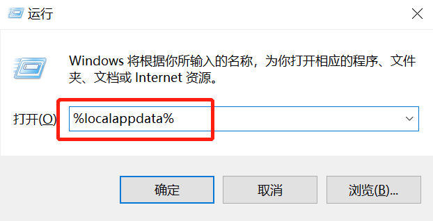 2.在键盘上同时按下【Win+R】打开运行窗口,输入“%localappdata%”并点击【确定】;