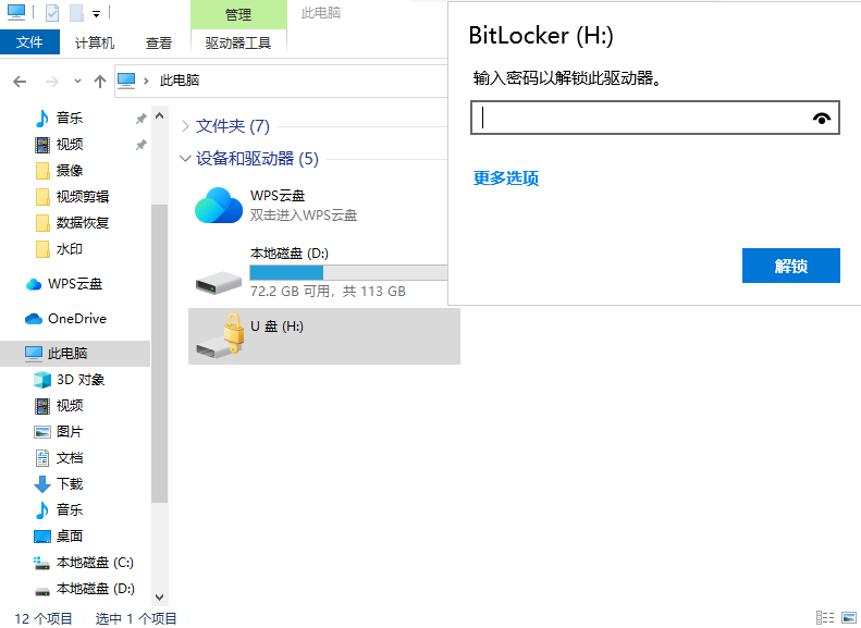 7.这时候我们再次重新插入U盘,打开则需要输入密码进行解锁。