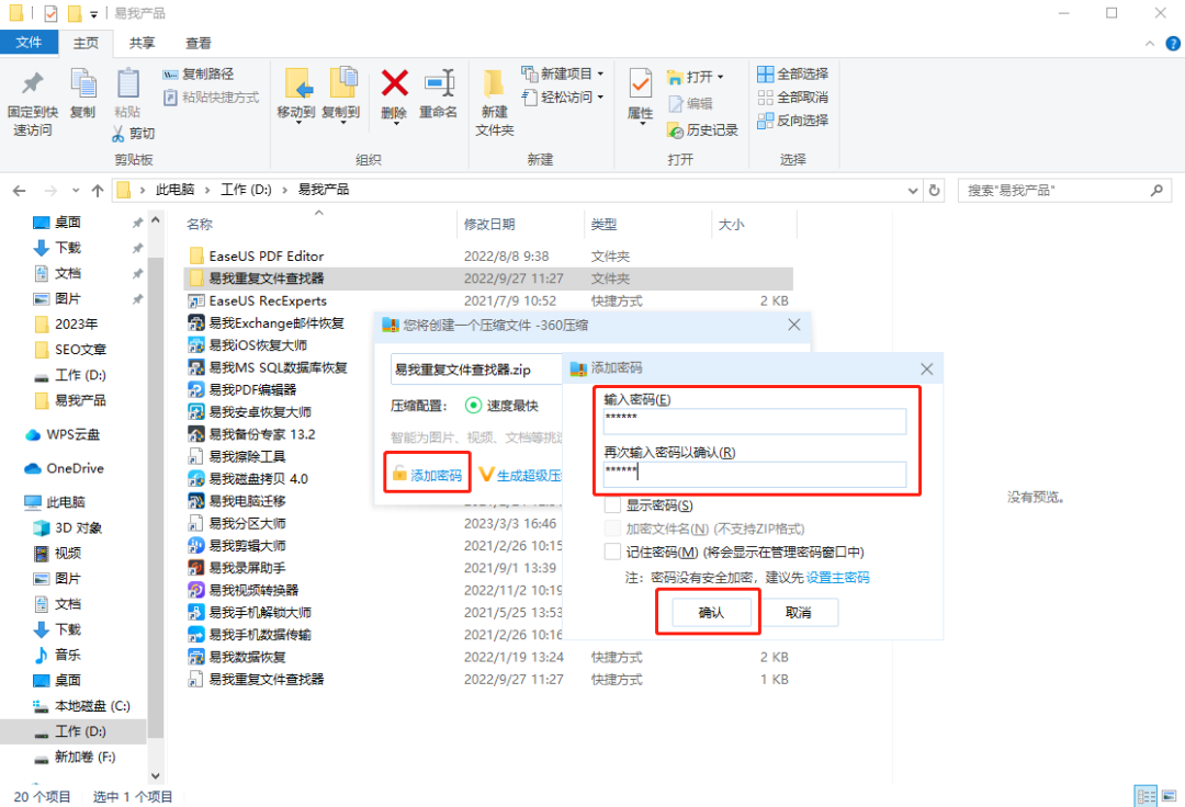 使用解压软件自带的加密功能,也不失为一个好选择,只不过每次查看都需要进行解压,文件过大就稍微有点麻烦。