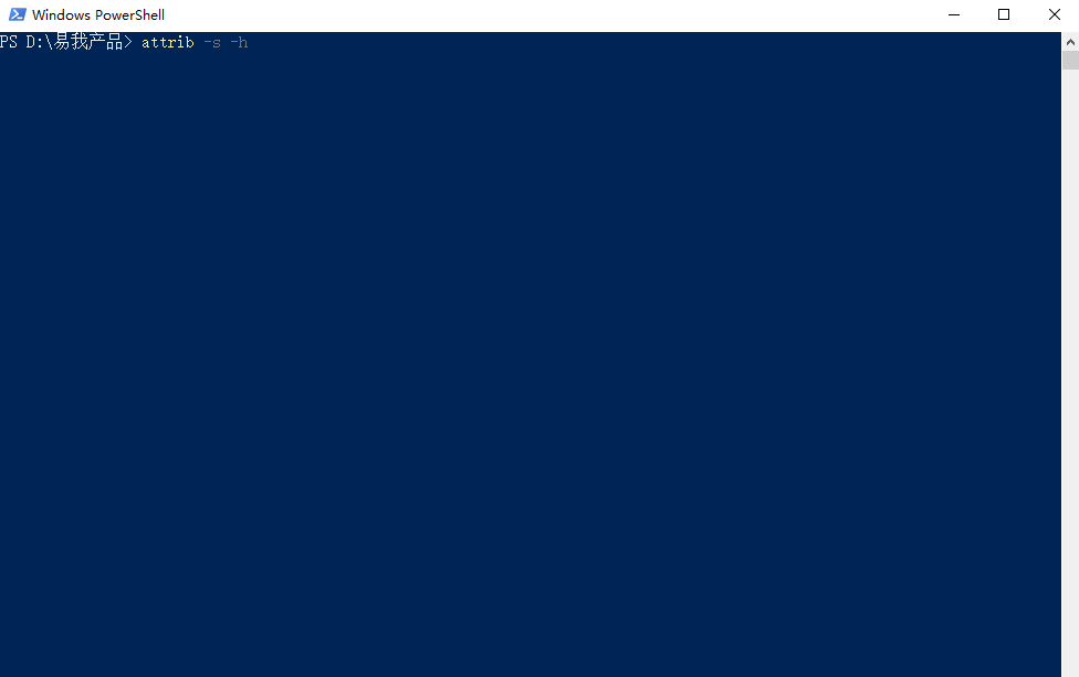 想要重新显示文件夹下的文件,同样方法调出Windows Powershell窗口,输入“attrib -s -h”并回车,文件就全部显示出来了。