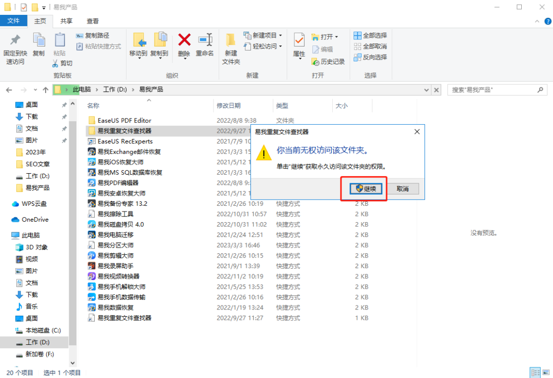 当我们再次点击这个文件夹,就会出现【您当前无权访问该文件夹】的提示,这时候,只需要点击继续,它便会告诉你打开文件夹的方法...真是始料未及~