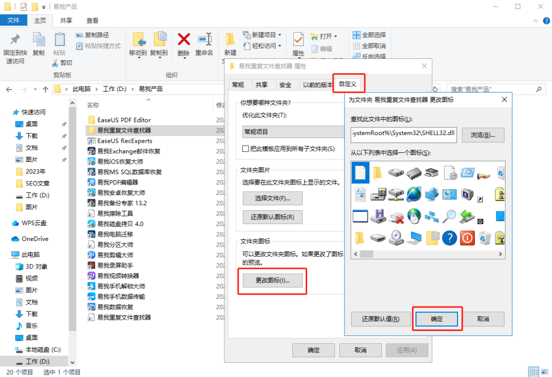 右键单击文件夹,点击【属性】-【自定义】-【更改图标】,在弹出的窗口中,选择喜欢的样式并确定即可。