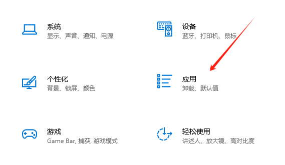 打开电脑设置页面:点击Windows的“开始”图标,点击“设置”,在“设置”的页面上找到“应用”,点击进入。