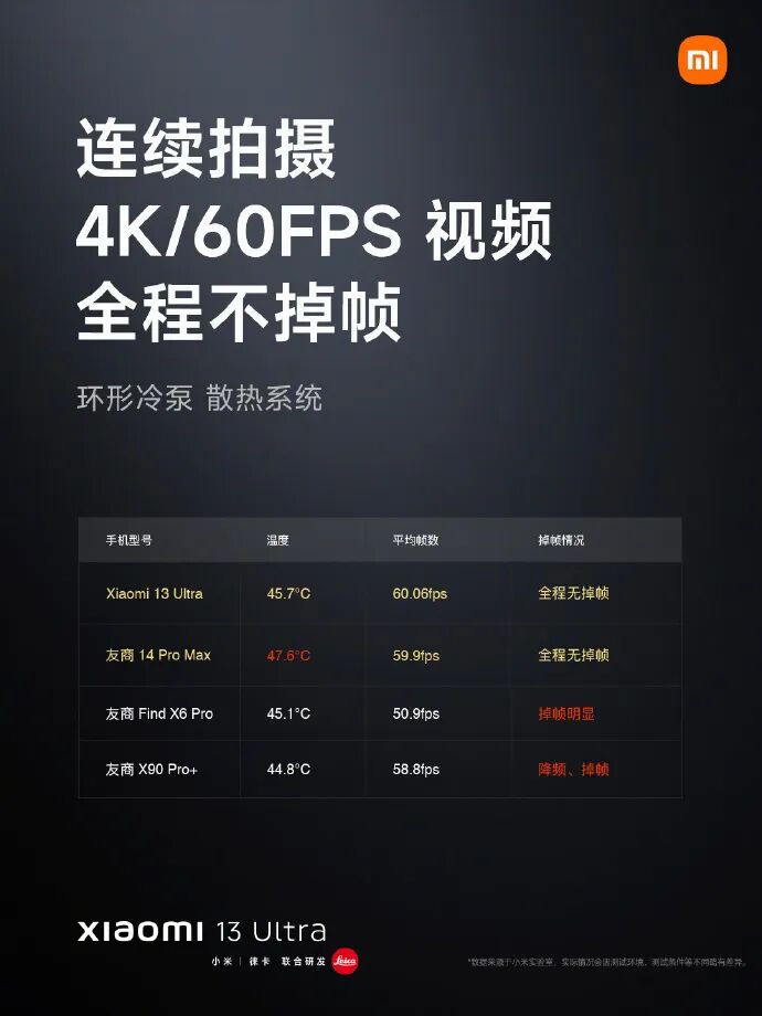 在全新散热系统的加持下,小米 13 Ultra能够实现全程4K 60帧视频录制不掉帧。