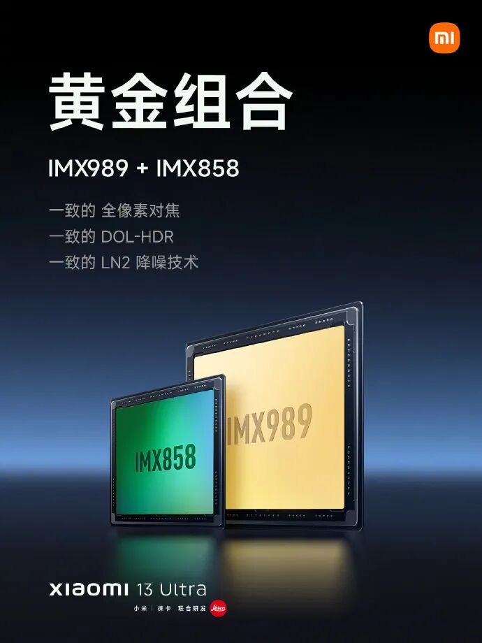 小米 13 Ultra配备1颗IMX989、3颗IMX858镜头,小米称它们为“黄金组合”。
