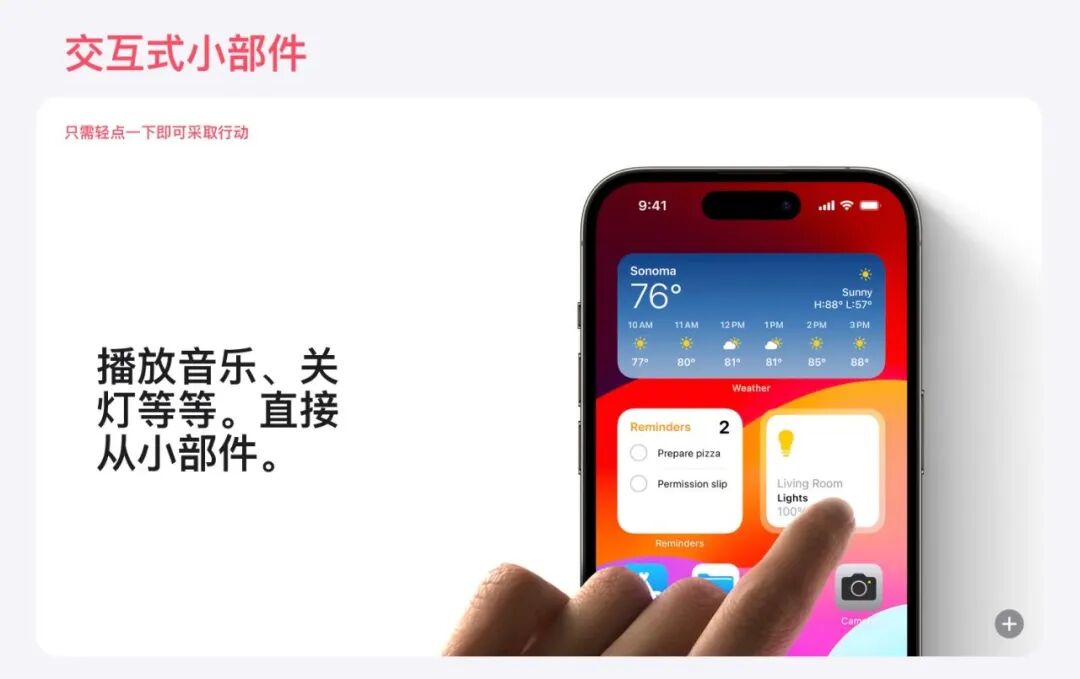 桌面小组件不再仅仅是信息展示,可以直接进行交互了。升级iOS 17后,可以直接通过桌面小组件完成待办事项、播放暂停歌曲、控制智能家居等操作。