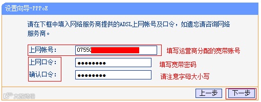 输入办理宽带的时候,运营商提供的宽带账号和密码。