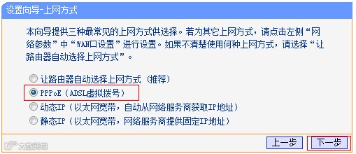 点击下一步,选择PPPoE的上网方式。
