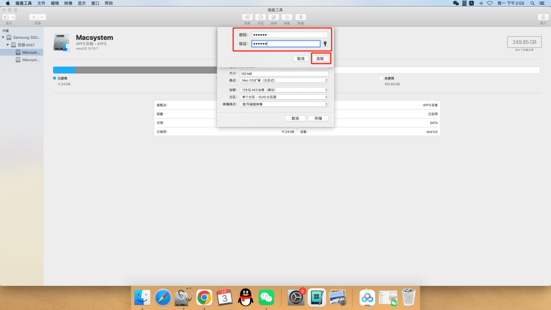 5.随即会弹出密码设置框,输入想要设定的密码并验证,然后点击「选取」;