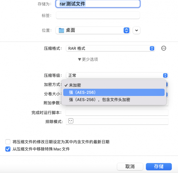 1.在压缩文件的时候,将加密文件方式选择为「强(AES-256)」;