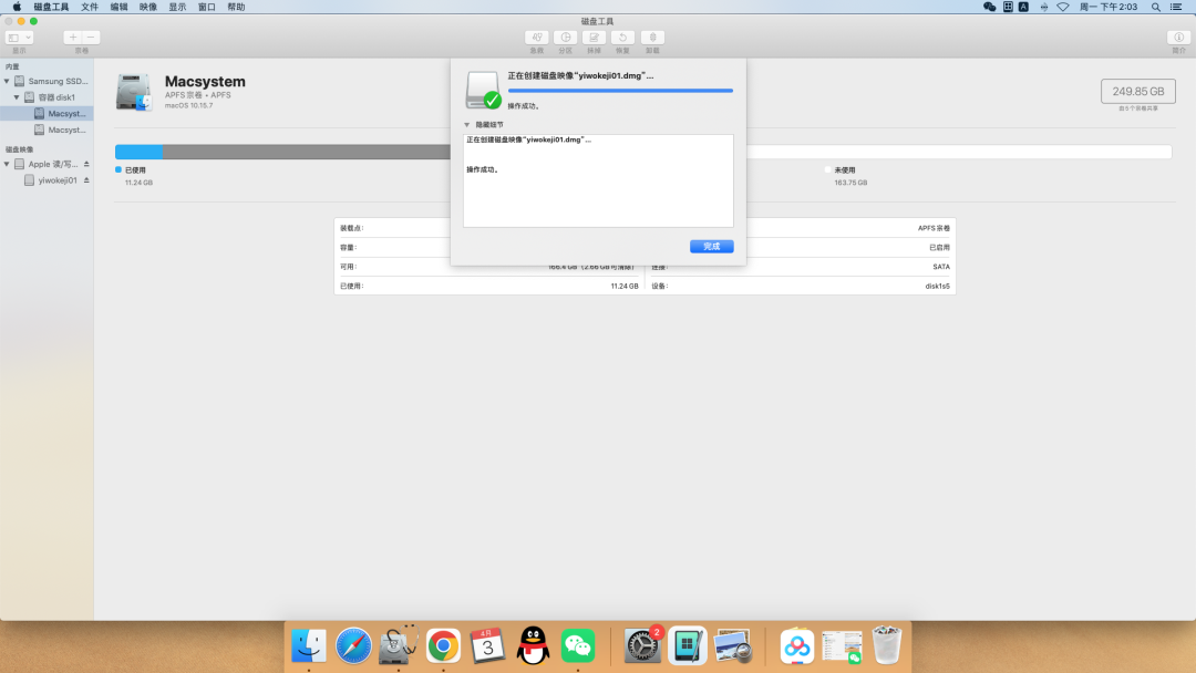 6.随后点击「存储」,会立刻生成dmg文件及磁盘,生成后点击「完成」;