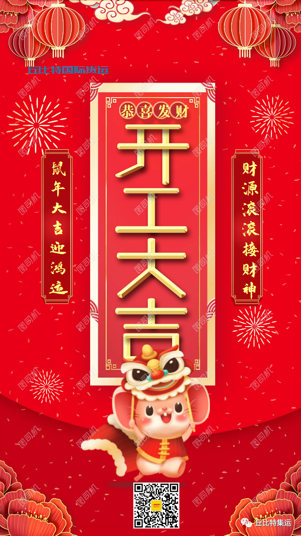 开工大吉 财源广进 丘比特国际货运祝您生意兴隆