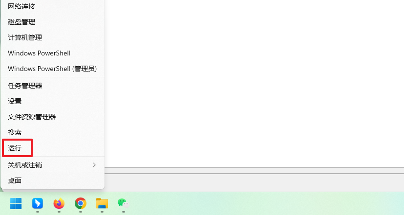 ①右击“开始”菜单,选择“运行”。