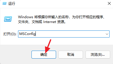 ②输入“MSConfig”,并点击“确定”按钮。