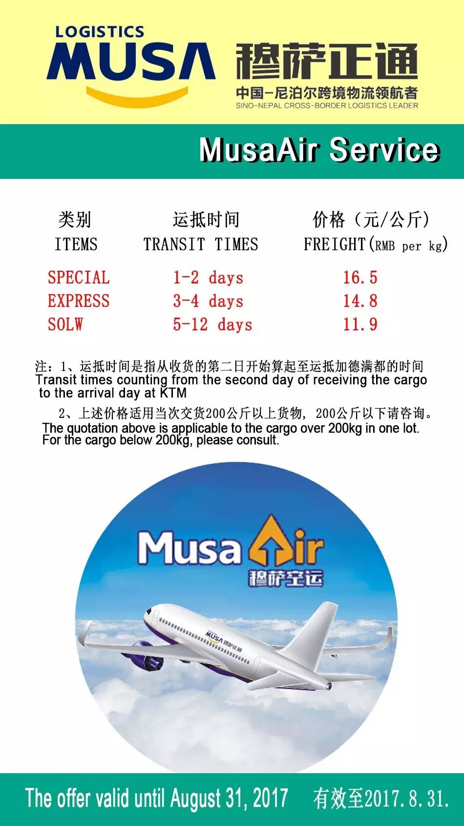 穆萨航空・穆萨中邮速递・穆萨陆路运输MUSA AIR · MUSA CHINAPOST · MUSA LAND TRANSPORT