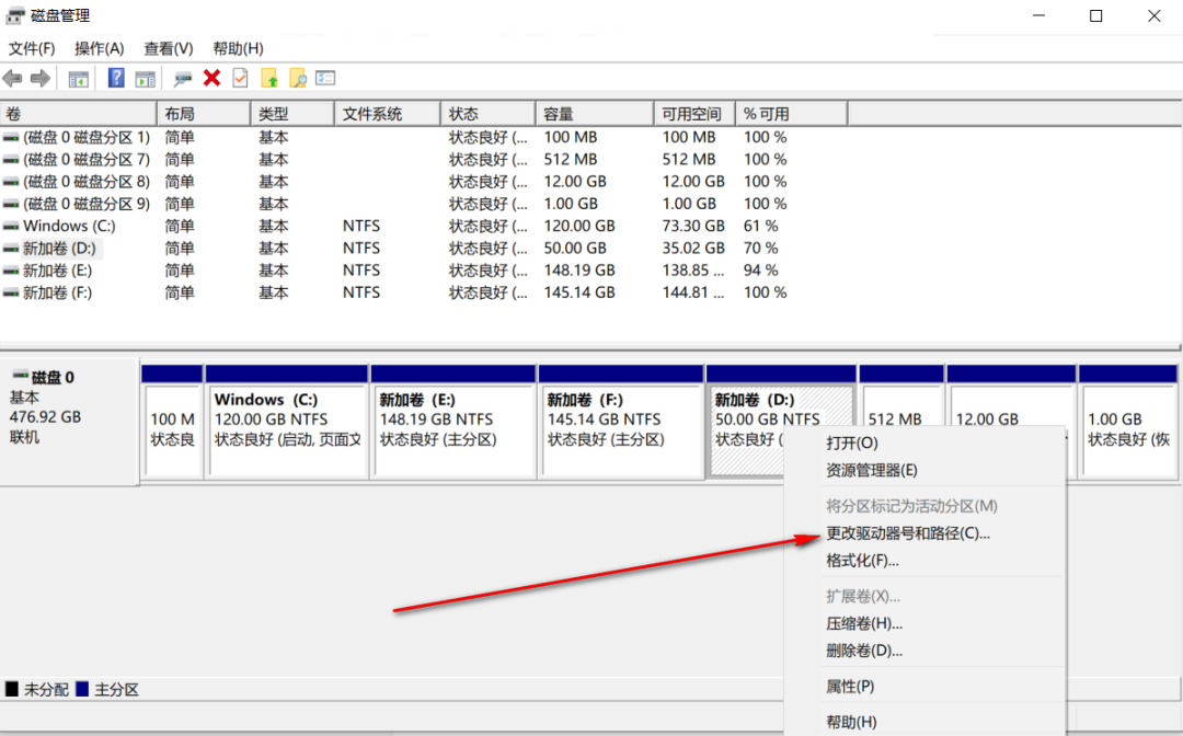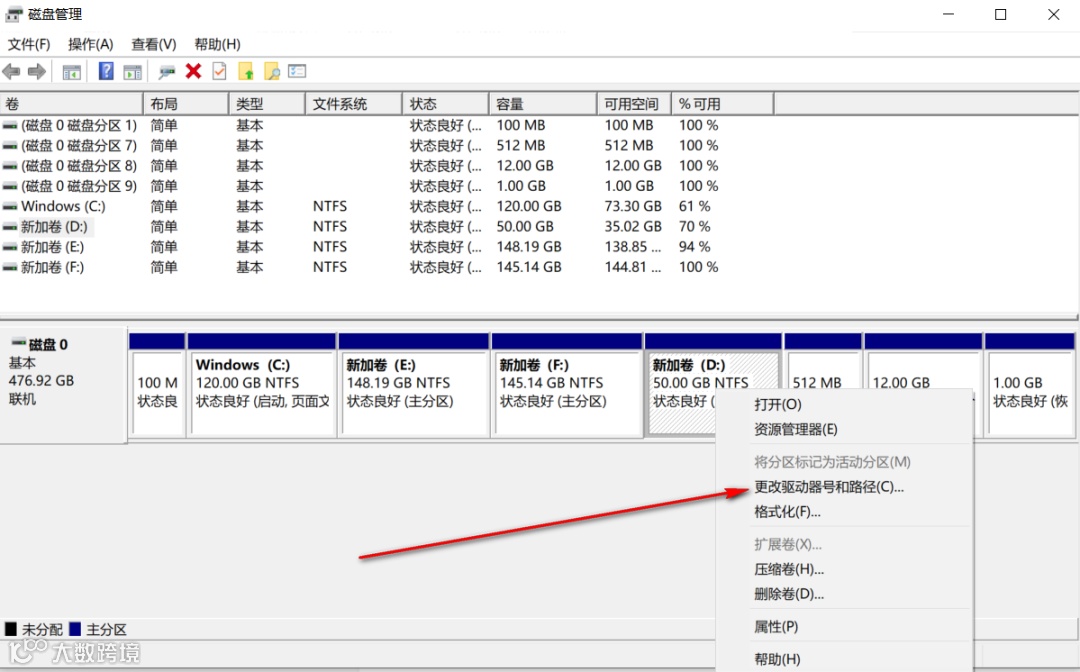 如果我想给自己的磁盘分个A盘、B盘出来可以吗?当然可以!打开「磁盘管理器」,右键需要修改的盘符,点击「更改驱动器号和路径」,按照提示修改即可。但需要注意,这样直接修改极有可能对已有的数据造成影响。