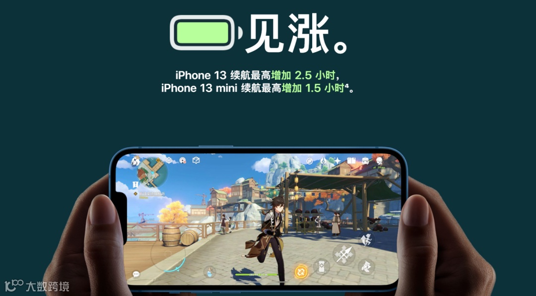 续航方面,内部结构进行了优化,能够放置更大的电池,iPhone 13续航相较上一代增加2.5小时,mini增加了1.5小时,而且支持智能数据切换模式,可以在没有5G的时候切换成4G提高续航。