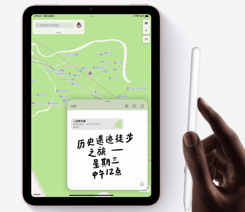 配备了USB-C端口,支持第二代Apple Pencil,可通过磁力吸附到iPad mini的一侧边框上。全新横向立体声扬声器系统,拥有12MP前置和后置镜头(f/1.8光圈)、True Tone闪光灯、具有智能HDR的增强型ISP,支持4K视频录像,同时拥有最新的HDR智能算法。